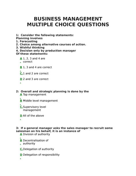 Read Online Business Management Multiple Choice Questions And Answers Epub